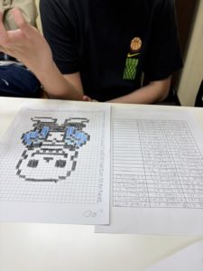 we continued working on our graphic design project. Many students progressed to the stage of running their code through a program to check whether their images were displayed as intended. By actually executing their code, they were able to notice small misalignments or unexpected outputs and make necessary adjustments.